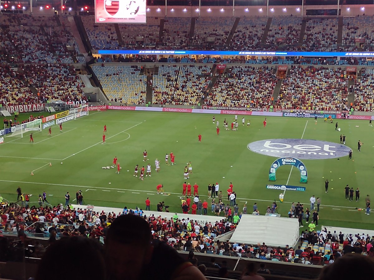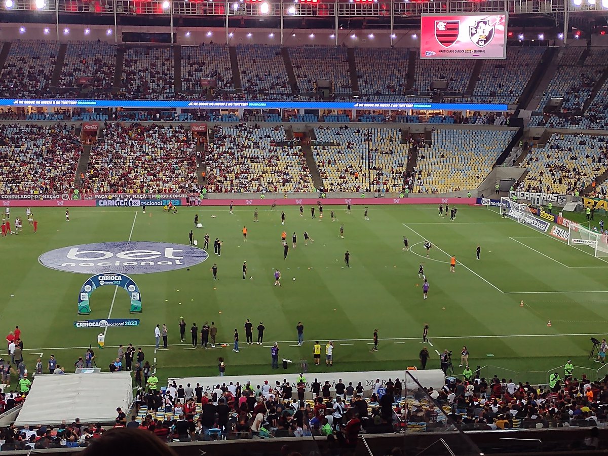 Elenco do Vasco acaba de subir para o gramado do Maracanã para iniciar o aquecimento. O Flamengo tinha subido alguns minutos antes. Faltam 35 minutos para a bola rolar. #lanceMARACA