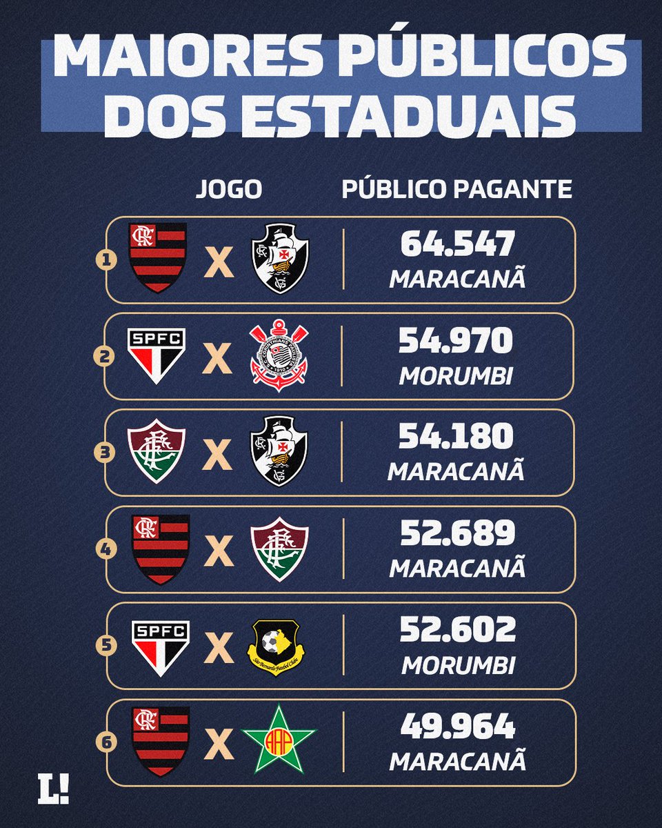 Confira os maiores públicos dos estaduais, até então, de acordo com o público pagante! ⚽🏟️