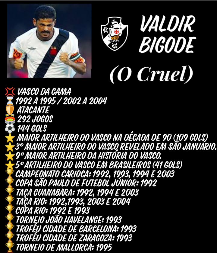Hoje é aniversário do idolo Valdir Bigode (51 anos), um dos maiores artilheiros da história do Vasco da Gama e o terceiro maior artilheiro do clube revelado em São Januário! 🎂👏🏻