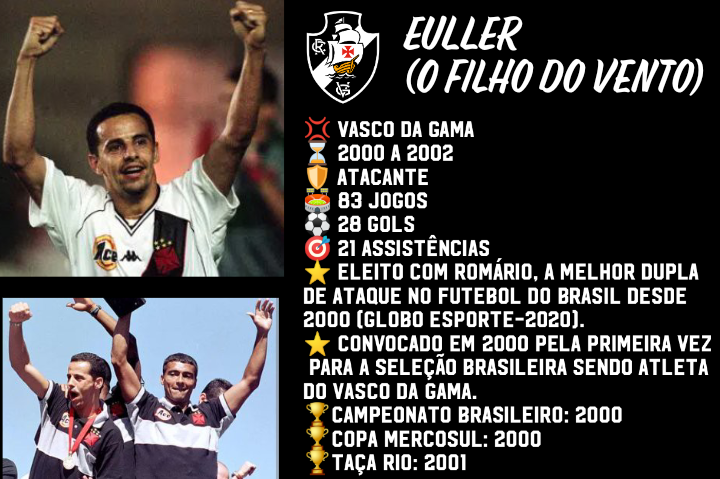 Hoje é aniversário do Euller, (52 anos), importantíssimo nas conquistas de 2000 e fez ao lado do Romário uma das melhores duplas de ataque da história do Vasco da Gama. O Filho do Vento tem seu nome marcado na história do nosso clube. 🎂👏🏻