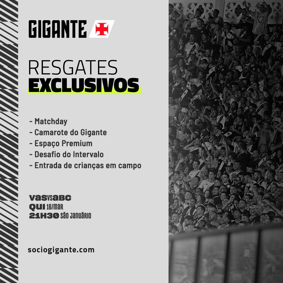 Sócio Gigante abre resgates exclusivos para Vasco x ABC; confira
