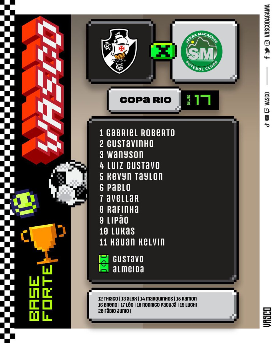 Sub-17: Confira a escalação do Vasco para o jogo contra o Serra Macaense