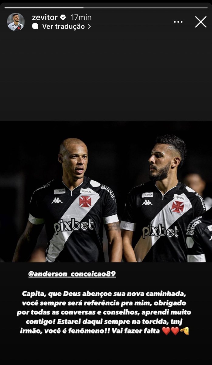 Alex Teixeira, Andrey Santos e Zé Vitor postam mensagens de despedida para Anderson Conceição