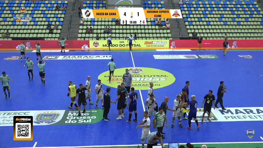Em seu quarto e último jogo pela primeira fase da Copa Mundo do Futsal Sub-21, o Vasco derrotou o Shekinah-BA por 4 a 1 na noite desta 5ª-feira em Maracaju (MS) e, classificado, aguarda a definição do seu adversário nas quartas de final.