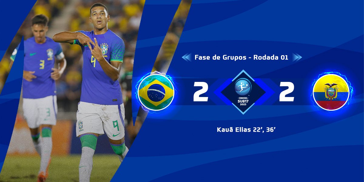 A Seleção Brasileira Sub-17 estreou com empate por 2 a 2 no Sul-Americano contra o Equador nesta quinta-feira (30). Com dois gols de Kauã Elias, o Brasil teve grande atuação no primeiro tempo, mas sofreu dois gols no fim da partida. A igualdade no placar deixou a equipe comandada por Phelipe Leal com um ponto, empatada com Colômbia e Uruguai.