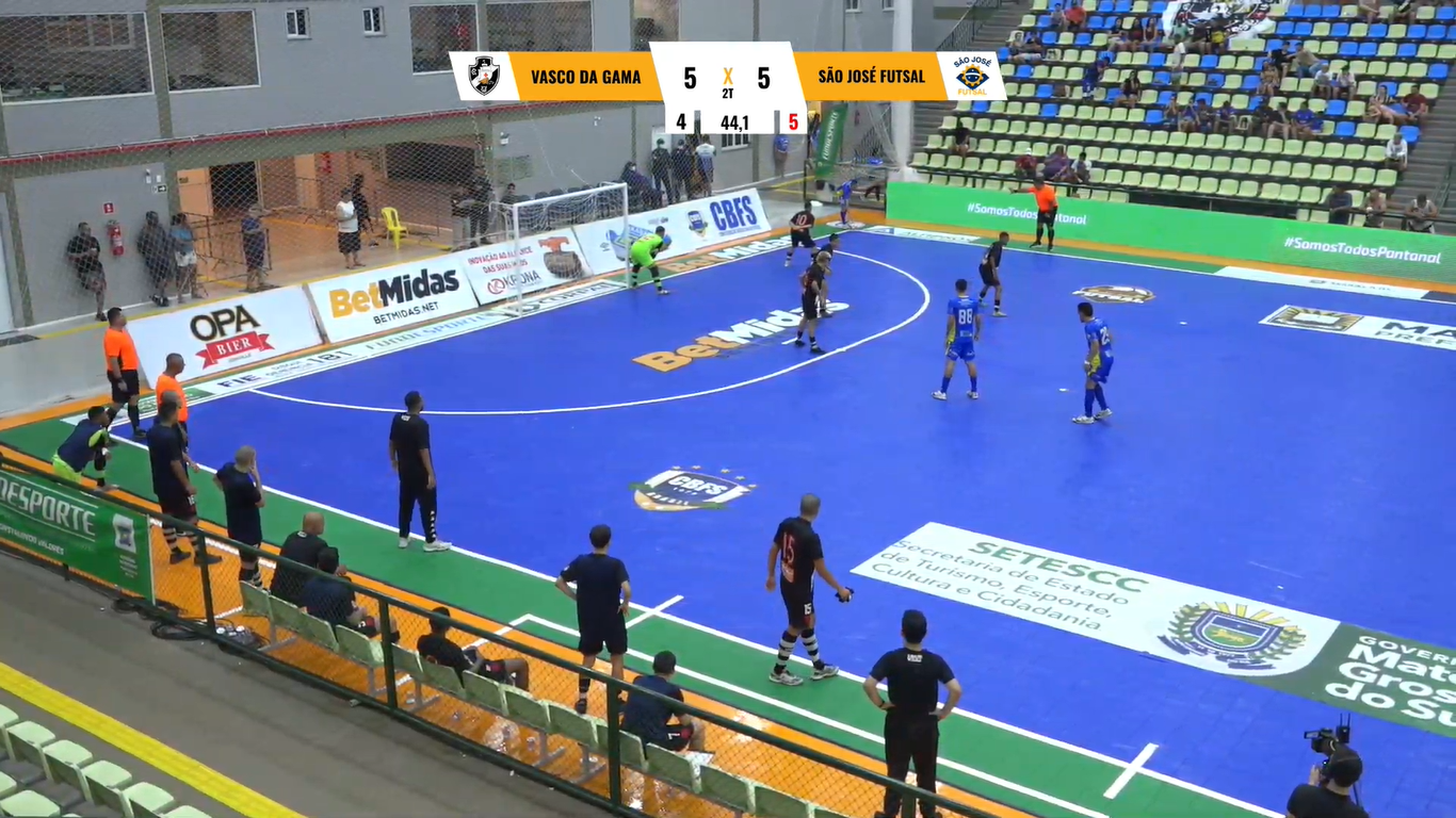 Após empatar por 5 a 5 no tempo normal, o Vasco foi derrotado pelo São José-SP por 3 a 2 nos pênaltis nas quartas de final da Copa Mundo do Futsal Sub-21 e se despediu da competição, que está sendo disputada em Maracaju (MS). O Gigante da Colina chegou a estar vencendo por 4 a 2, mas levou a virada para 5 a 4, empatando a seguir. A 44 segundos do fim, o jogo foi paralisado por cerca de meia hora devido ao spray de pimenta usado pela polícia para controlar uma confusão entre torcedores. Com o jogo recomeçado e sem alteração no placar, a decisão da vaga na semifinal foi para os pênaltis, com o Vasco sendo derrotado por 3 a 2 após 6 cobranças para cada lado.