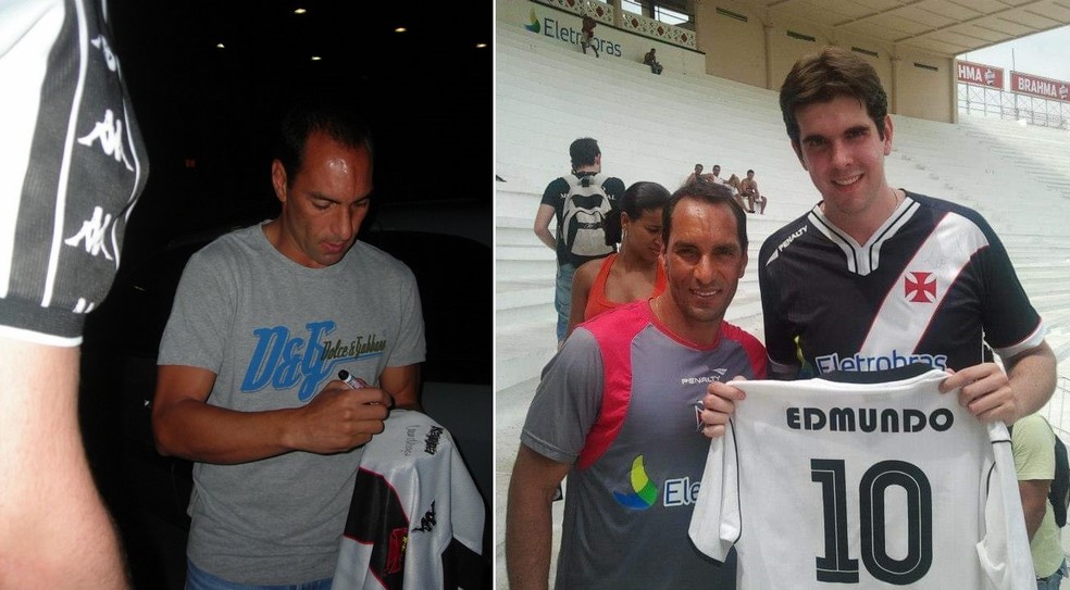 - Eu encontrei o Edmundo três vezes, mas todas em treinos e rapidamente. Nessa última, na despedida dele, eu esperei quase 4 horas para encontrá-lo e ele autografar algumas das minhas camisas. Espero encontrá-lo para ele autografar o restante, mas com tempo para não causar nenhuma lesão por esforço repetitivo, porque são muitas camisas (risos) - comentou o colecionador.