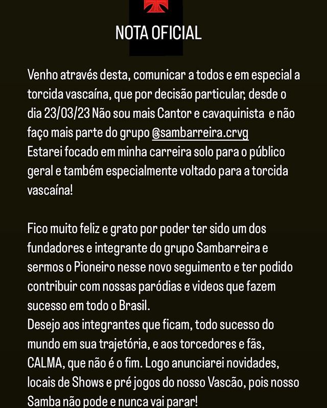 Deus sabe o que aprendi e o que deixei como ensinamento. Agora. basta usarmos tudo isso para um bem comum que é a nossa torcida e o nosso Cube de regata Vasco da Gama!