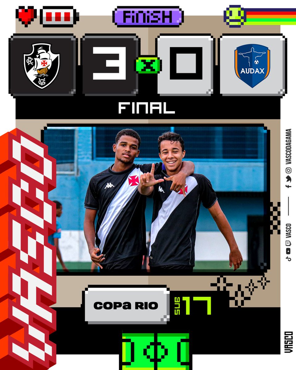 A categoria sub-17 do Vasco venceu o Audax por 3 a 0 na manhã desta sexta-feira de feriado, pela quarta rodada da Copa Rio. Os gols foram de Lukas, no primeiro tempo, Rafinha e Wanyson na etapa final.