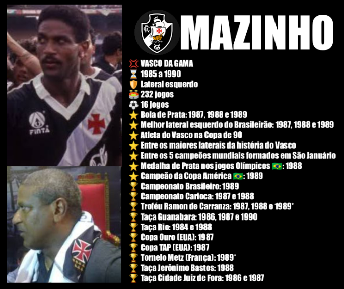 Hoje é aniversário do ídolo Mazinho (57 anos), um dos grandes laterais da história do Vasco da Gama! Cria da Colina, nordestino de Santa Rita na Paraíba, tetracampeão mundial de 94 e marcou seu no nome em São Januário no esquadrão da 'SeleVasco' nos anos 80. #CRVG 🎂💢