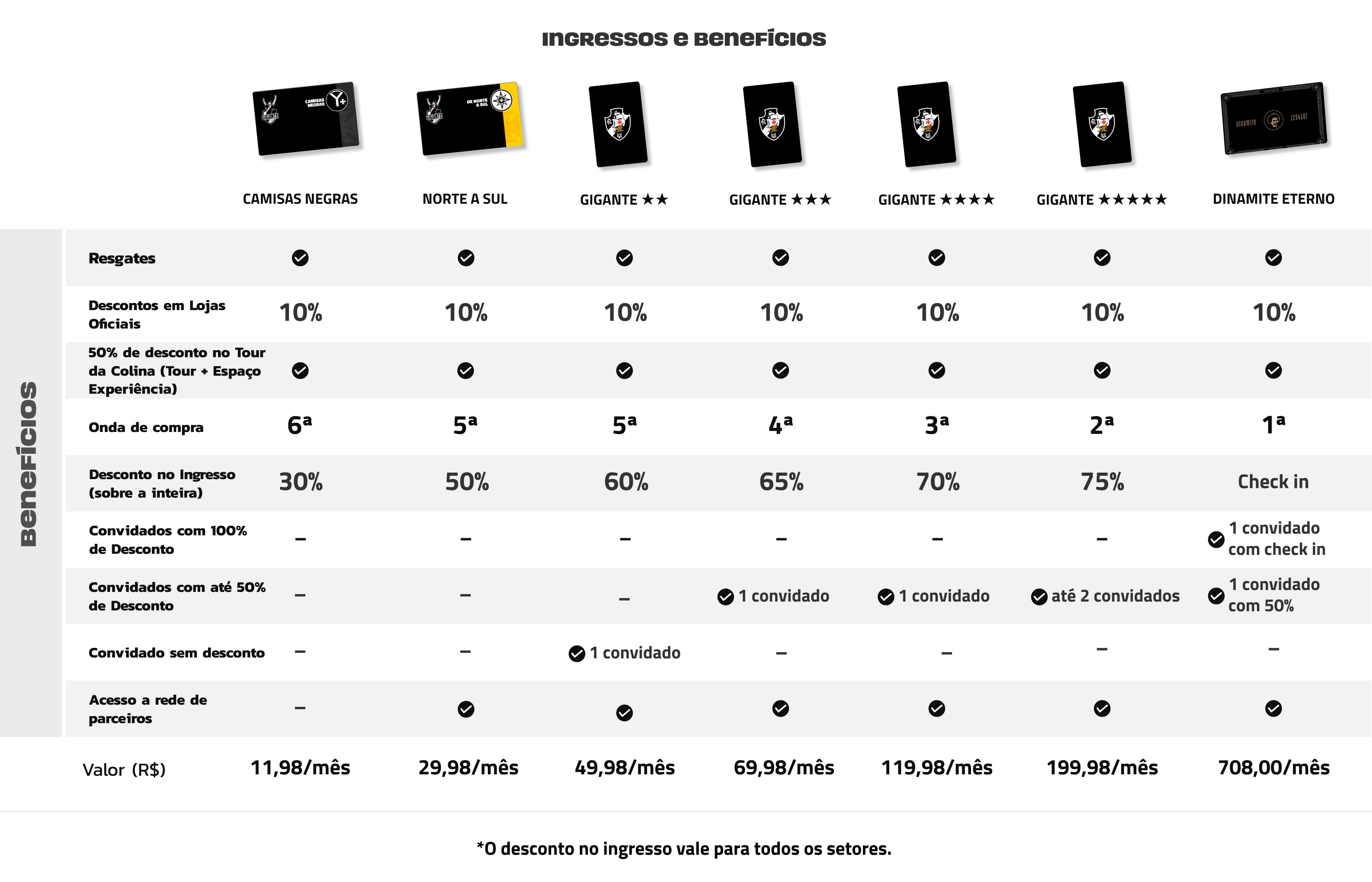 Veja o quadro comparativo dos novos planos do Sócio Gigante