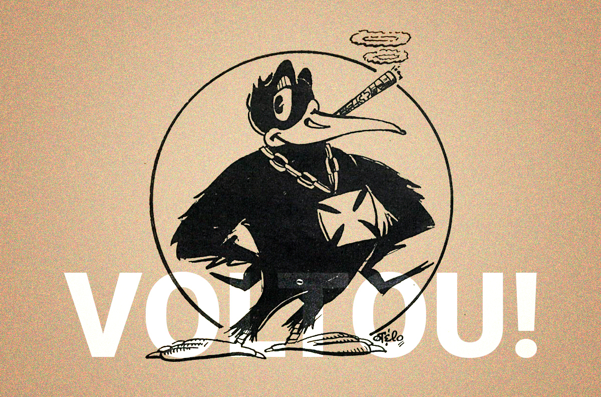 Sempre que questionado pelo motivo de ter desenhado o corvo, Otelo dizia que a ave era sinal de sorte em Portugal. Entretanto, o surgimento do corvo foi uma ideia de Alvaro do Nascimento, que contou com a ajuda do chargista para popularizar a mascote.