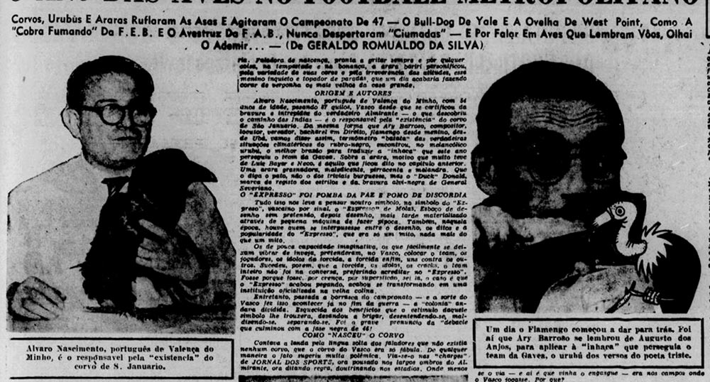 Em 1947, Alvaro do Nascimento Rodrigues, jornalista adepto da Cruz de Malta, que escrevia para o Jornal dos Sports, foi o idealizador do Corvo, a mascote vascaína que passou a fazer dupla com a mascote do Almirante, que já representava o Club de Regatas Vasco da Gama.