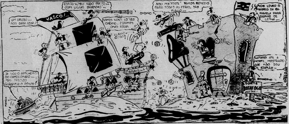 Os meses passaram… no dia 21 de setembro de 1947, a primeira charge de Otelo para o diário carioca especializado em esportes, publicada no dia do embate entre o Vasco da Gama e o Botafogo pelo Campeonato Carioca daquele ano, intitulou-se "Vai Começar A Batalha!". A caravela vascaína iria enfrentar o castelo botafoguense.