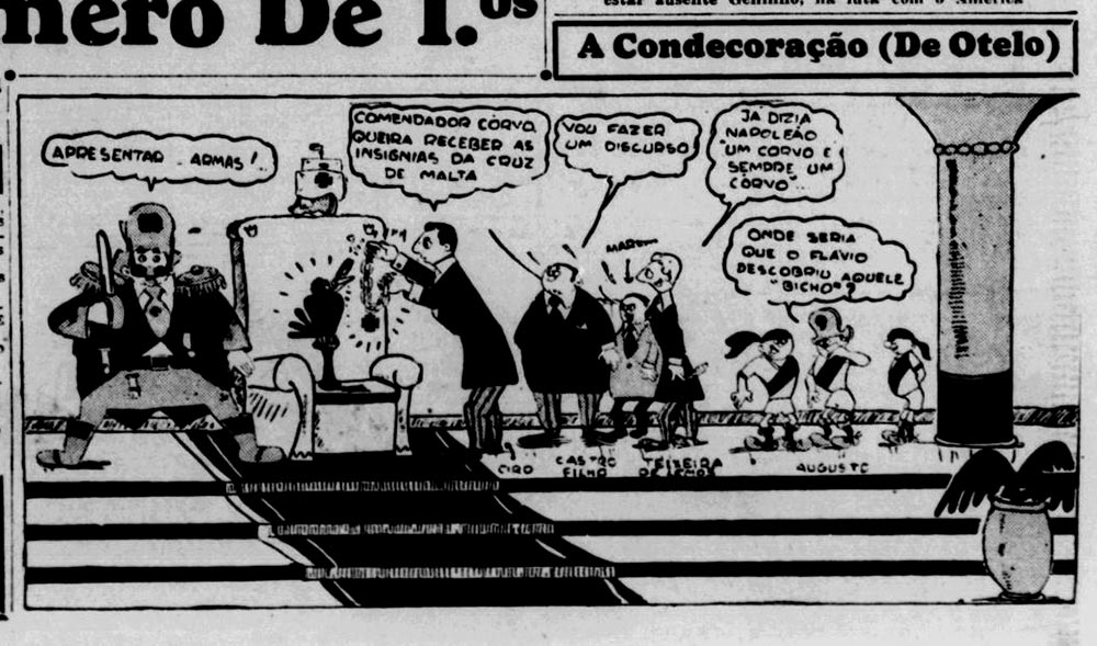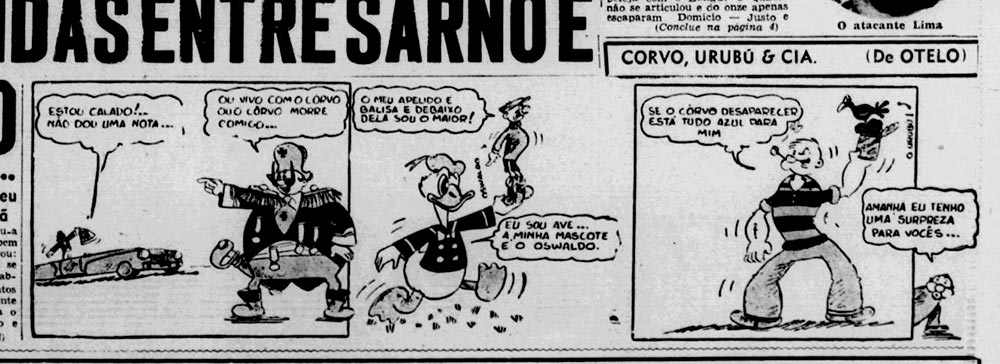 OTELO. Corvo, Urubú & Cia. Jornal dos Sports, Rio de Janeiro, 22 de novembro de 1947, p. 1. Acervo: Biblioteca Nacional. |