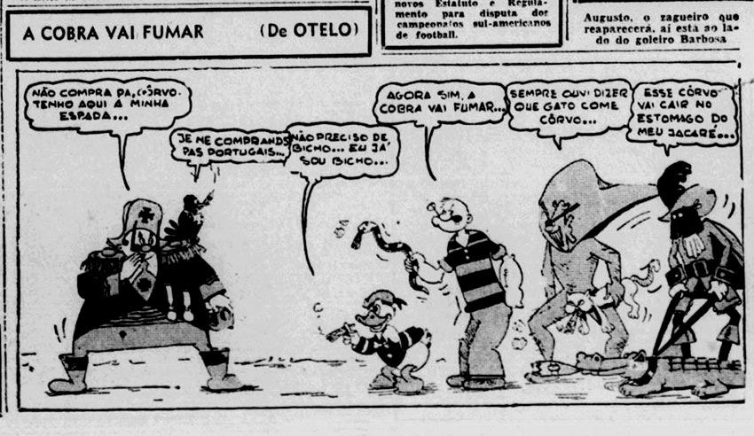 OTELO. A cobra vai fumar. Jornal dos Sports, Rio de Janeiro, 30 de outubro de 1947, p. 1. Acervo: Biblioteca Nacional. |