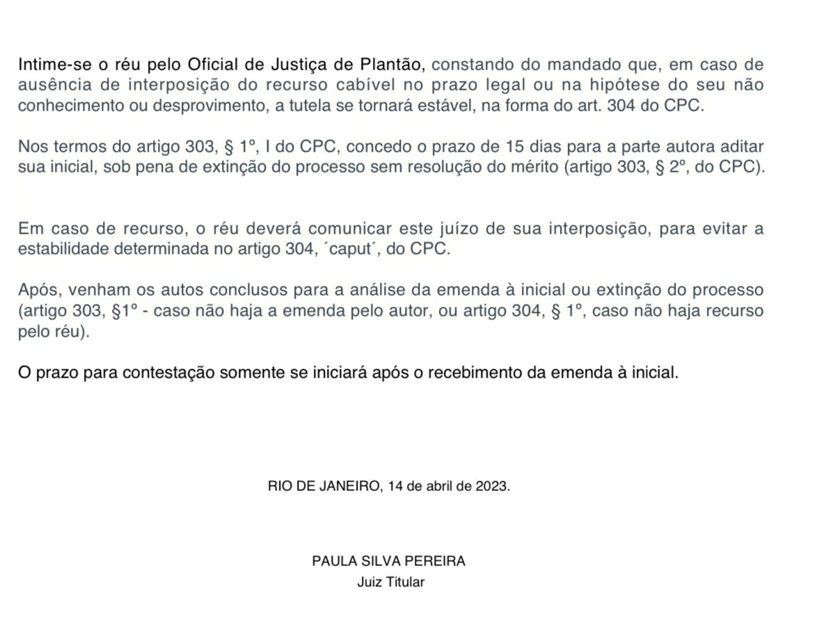 Em tutela antecipada, a juíza Paula Silva Pereira, da 35ª Vara Cível, decidiu da seguinte forma:
