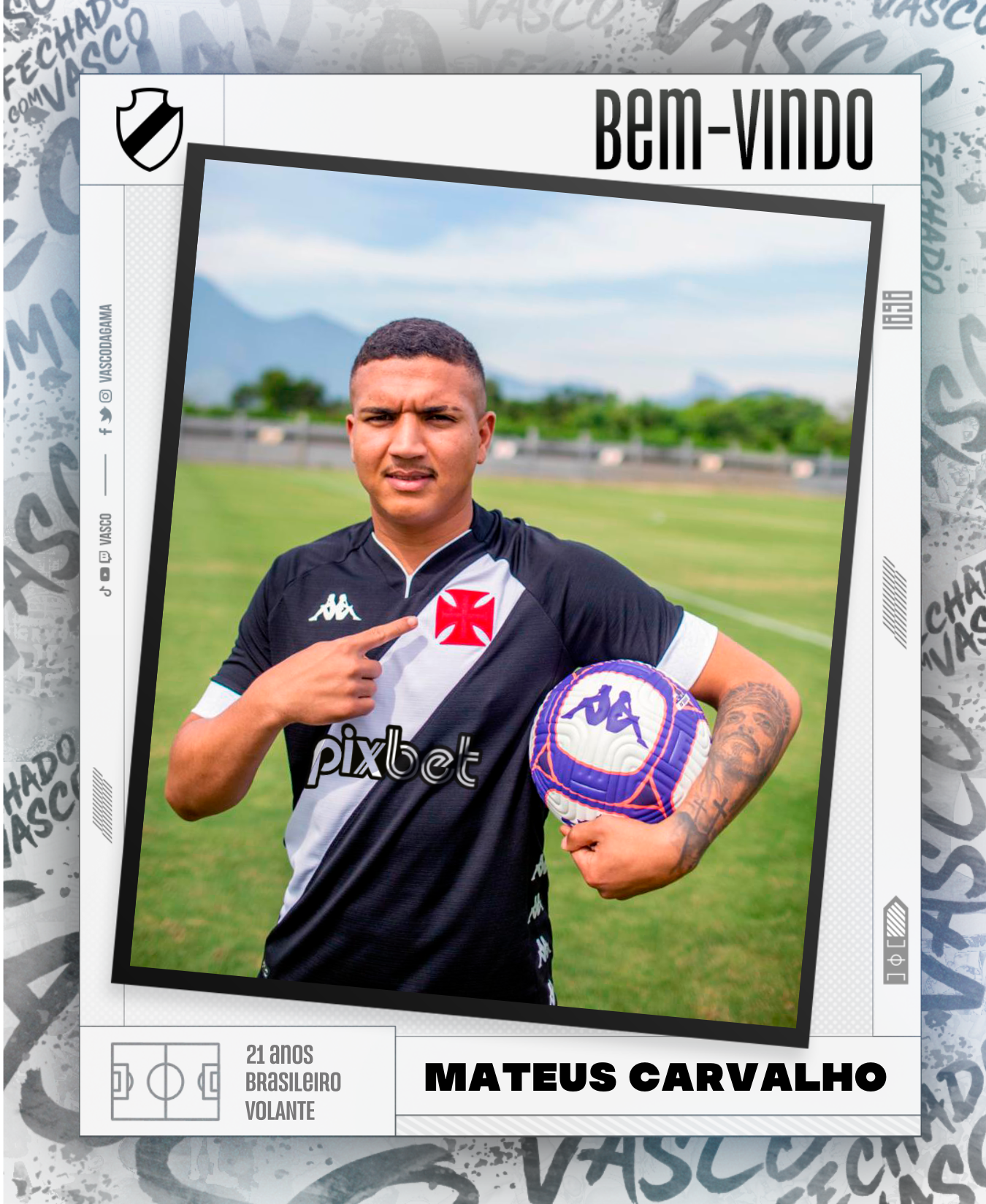 O Vasco da Gama acertou a contratação de mais um reforço para a temporada 2023. O volante Mateus Carvalho, do Náutico, é o décimo quinto jogador que se junta ao elenco comandado pelo técnico Maurício Barbieri. O jogador chega por empréstimo até abril de 2024.