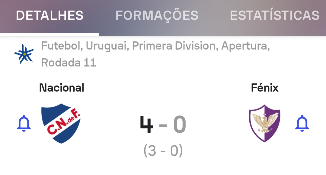 O Nacional venceu o Félix por 4 a 0, pelo Campeonato Uruguaio.