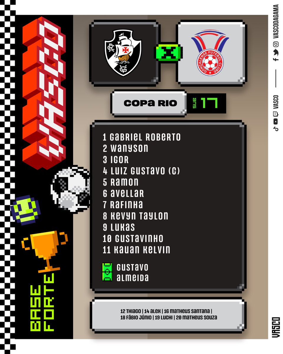 Sub-17: Confira a escalação do Vasco para o jogo contra o Gonçalense