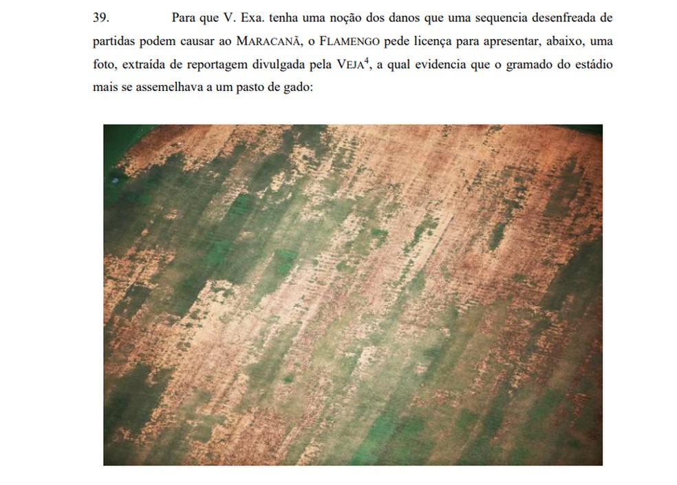 O Flamengo, em determinado momento da peça, também cutucou o Vasco, que tem pela frente apenas o Brasileirão para disputar. "Ocorre, no entanto, que a aludida quantidade de partidas já extrapola, e muito, o recomendado tecnicamente para manutenção adequada do gramado. Esta situação excepcional, aliás, somente ocorreu porque FLAMENGO e FLUMINENSE, ao contrário do VASCO DA GAMA, jogaram as finais do CAMPEONATO CARIOCA e estão disputando a CONMEBOL LIBERTADORES e a COPA DO BRASIL", escreveu.