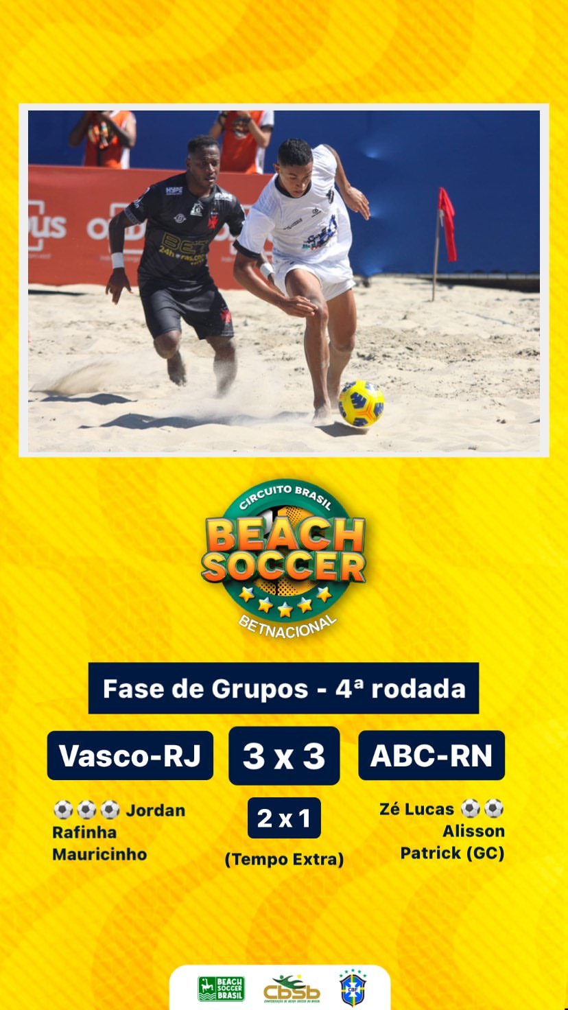 Beach Soccer: Vasco vence o ABC por 5 a 4 pelo Circuito Brasil