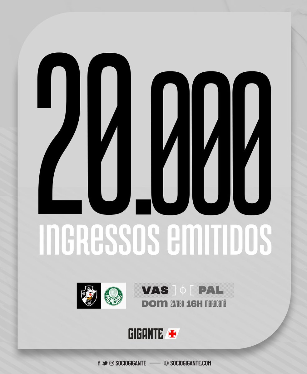 Já foram emitidos 20 mil ingressos para Vasco x Palmeiras