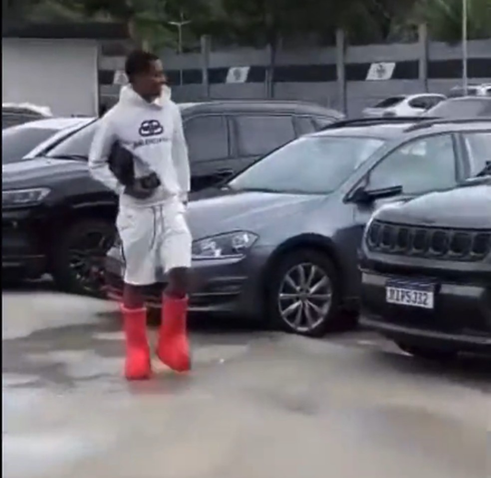 O zagueiro chegou para treinar com botas vermelhas, como é possível ver no vídeo abaixo publicado pelo lateral-esquerdo Paulo Victor em suas redes sociais. Ao ver Miranda se aproximando, ele brincou: