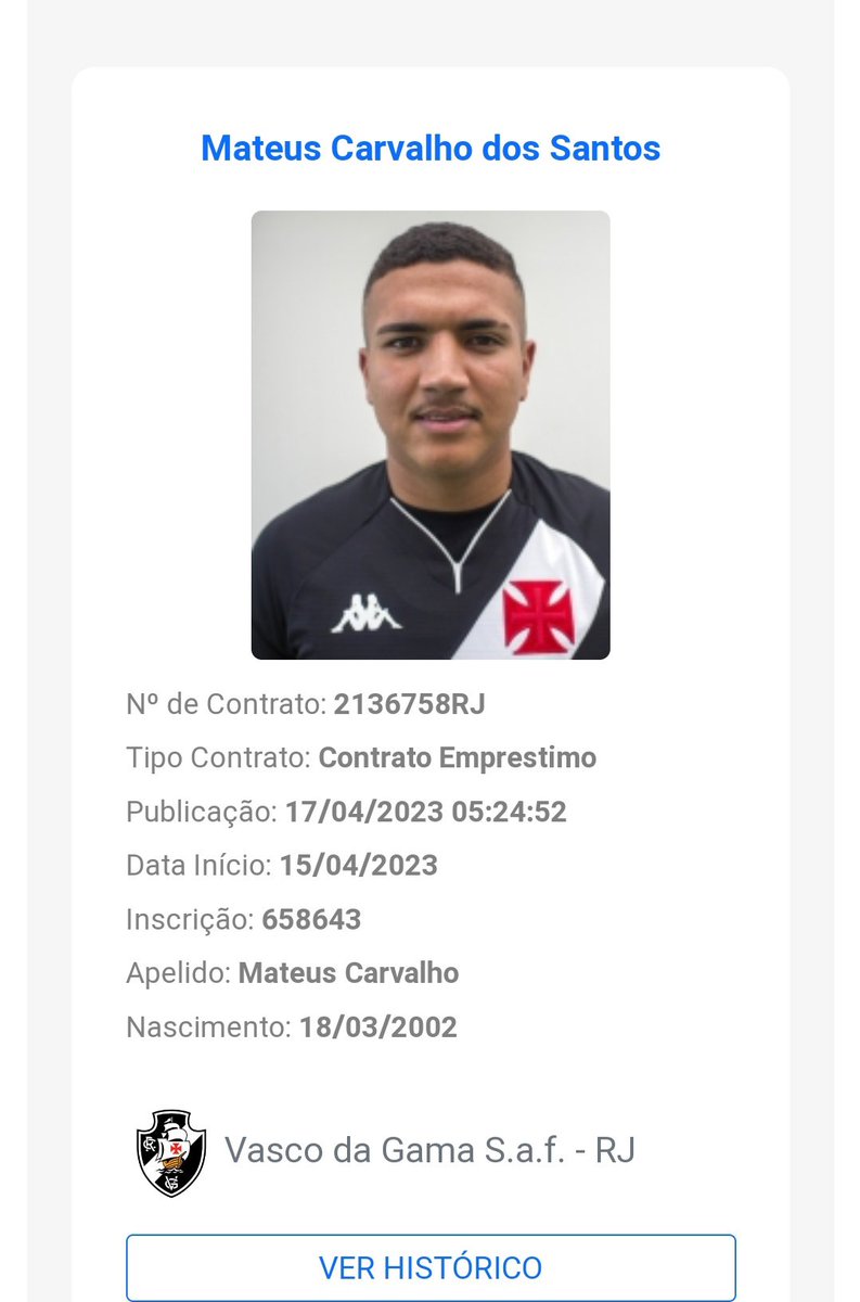 🥥🚨| Mateus Caravalho (Cocão) aparece no BID, e já pode estrear pelo Vasco.