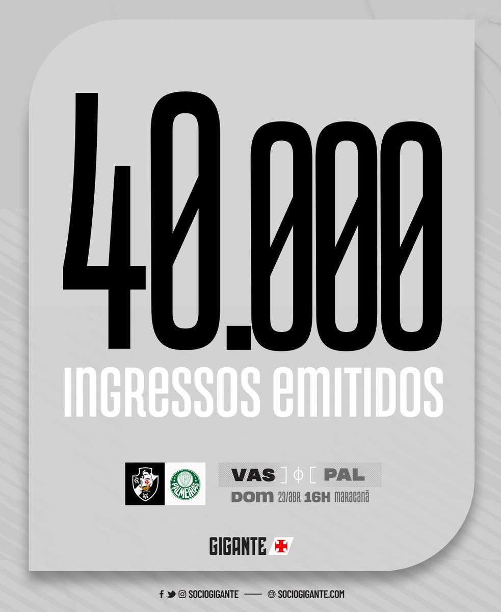 Já foram emitidos 40 mil ingressos para Vasco x Palmeiras