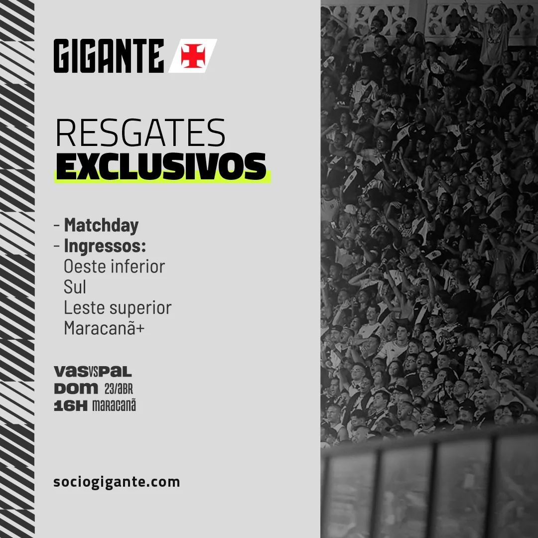 Sócio Gigante terá resgate de experiências para Vasco x Palmeiras a partir das 19h
