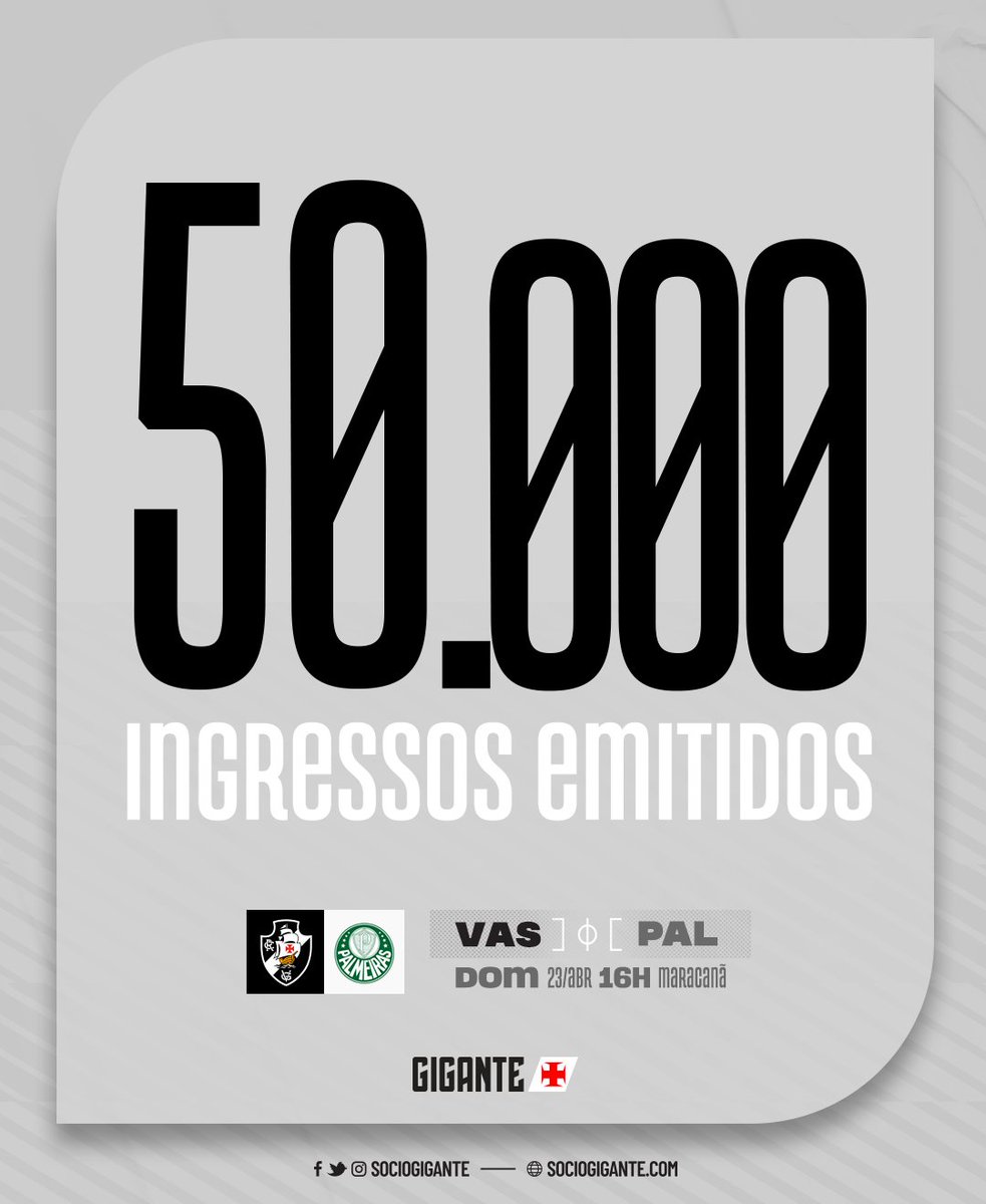 Já foram emitidos 50 mil ingressos para Vasco x Palmeiras