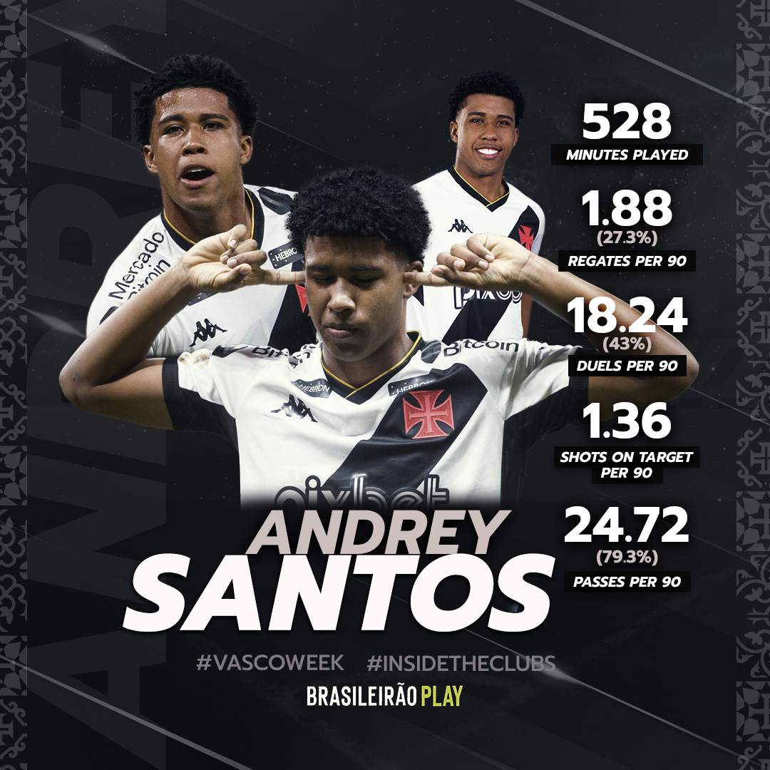 Los números de Andrey Santos con apenas 6 partidos en 𝙑𝘼𝙎𝘾𝙊, en lo que va del 2023, son increíbles. 🔥
