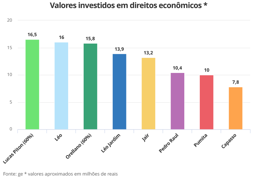 O Vasco investiu um pouco mais de R$ 100 milhões na aquisição de direitos econômicos em sua primeira janela de transferências com a 777 Partners. No total, foram oito jogadores comprados.