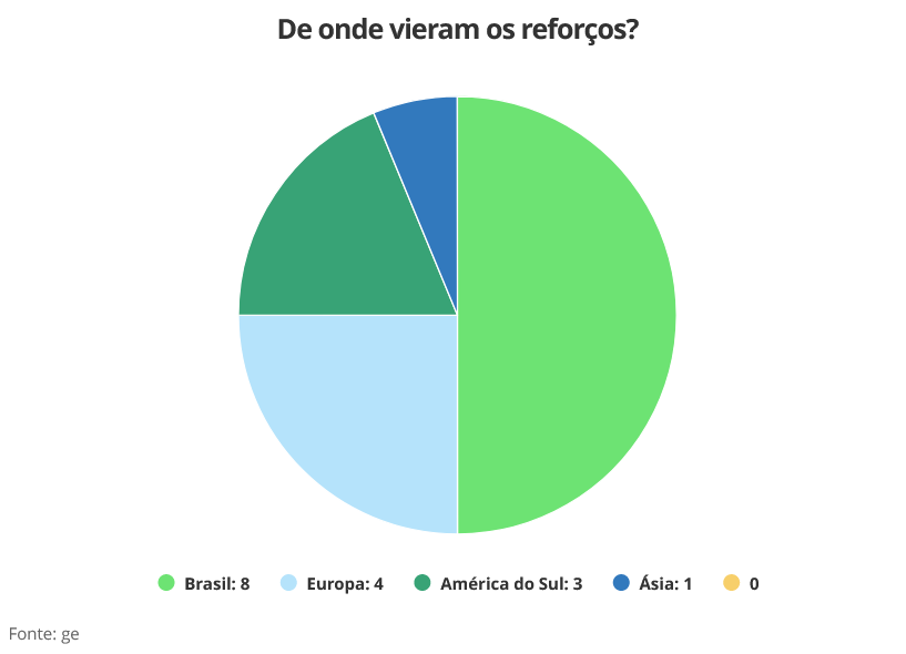 O Vasco não adotou um padrão de procedência de jogadores, mas a metade das 16 contratações foi de jogadores de clubes brasileiros.