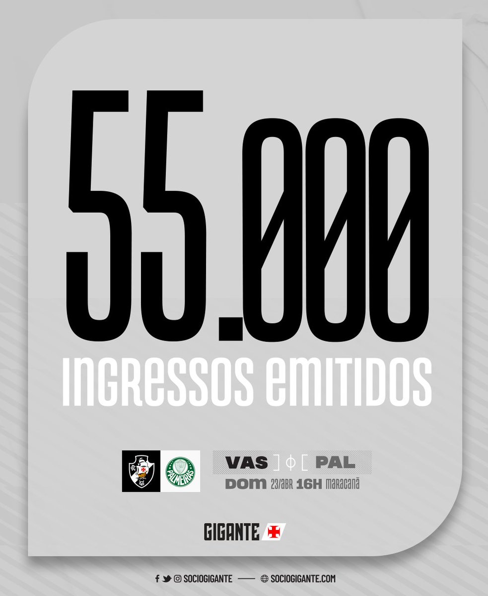 Já foram emitidos 55 mil ingressos para Vasco x Palmeiras