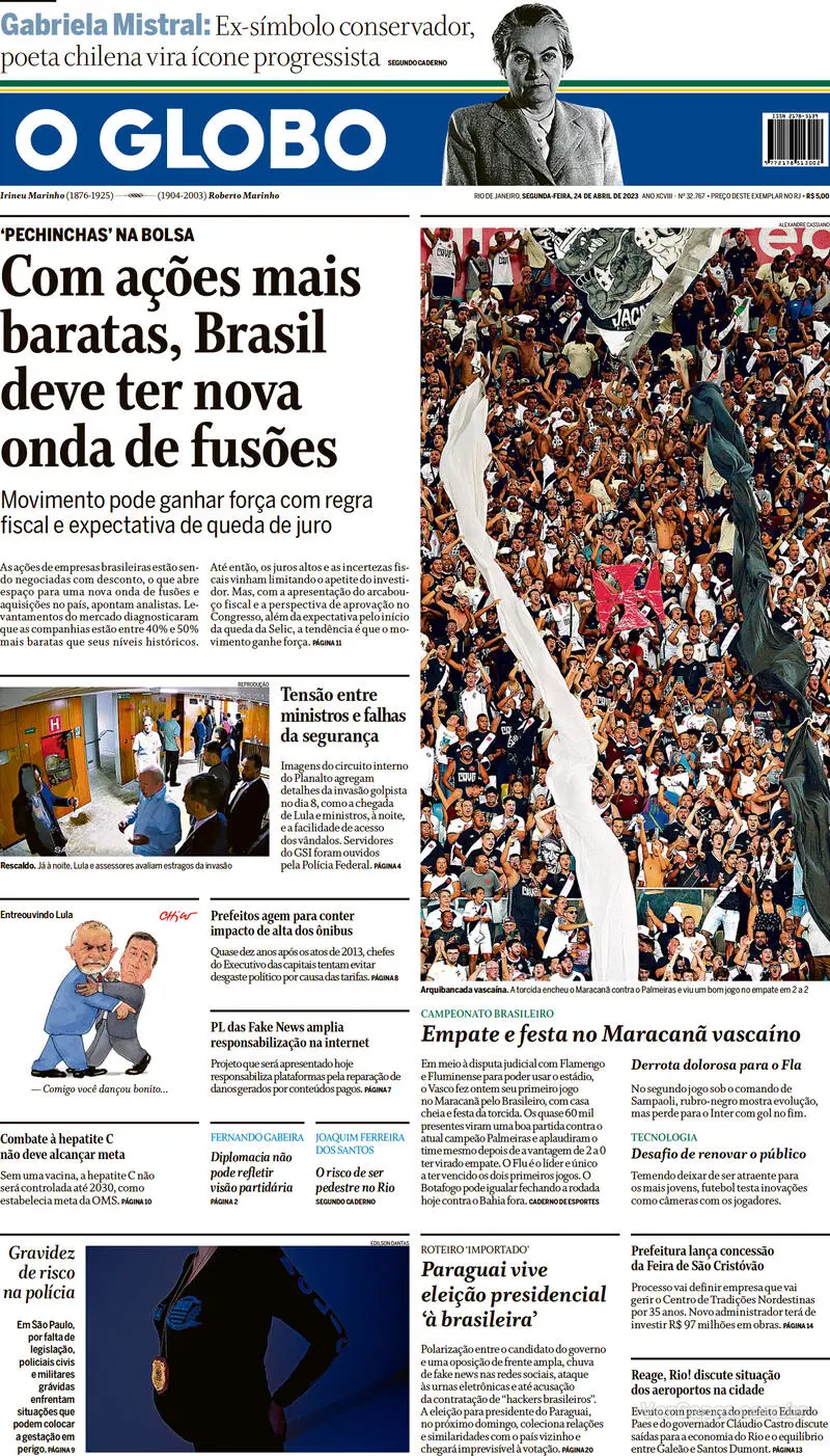 Pelo Campeonato Brasileiro, o Vasco empatou com o Palmeiras por 2 a 2 no Maracanã após estar vencendo por 2 a 0. Veja as capas dos jornais.
