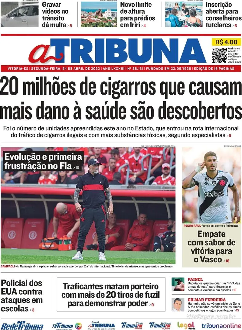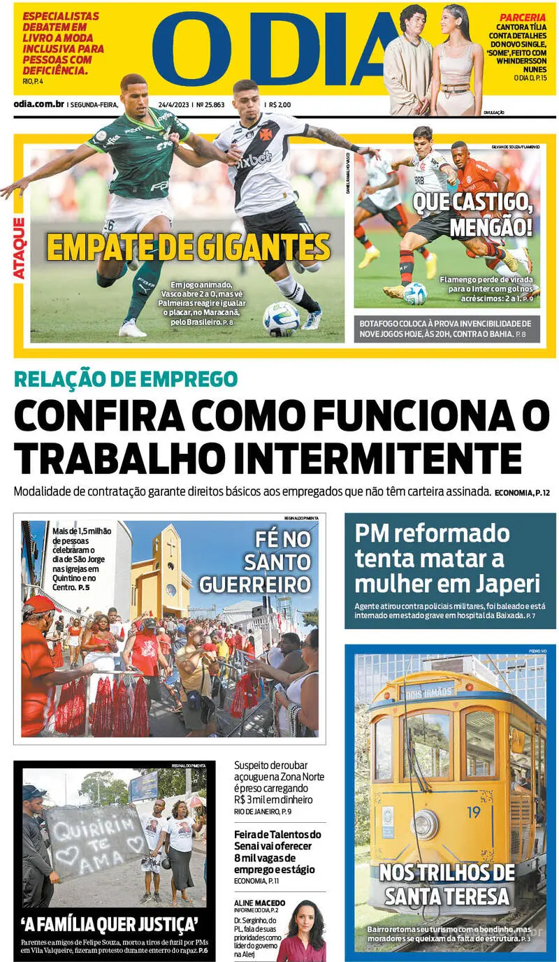 Veja as capas dos jornais após Vasco 2 x 2 Palmeiras