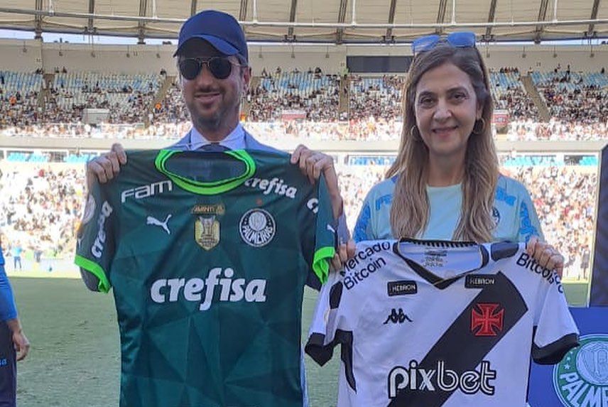 Homenagem ao #MaiorDeTodos, Roberto Dinamite, recebida por seus familiares e a troca de camisas com a presidente Leila Pereira do Palmeiras.