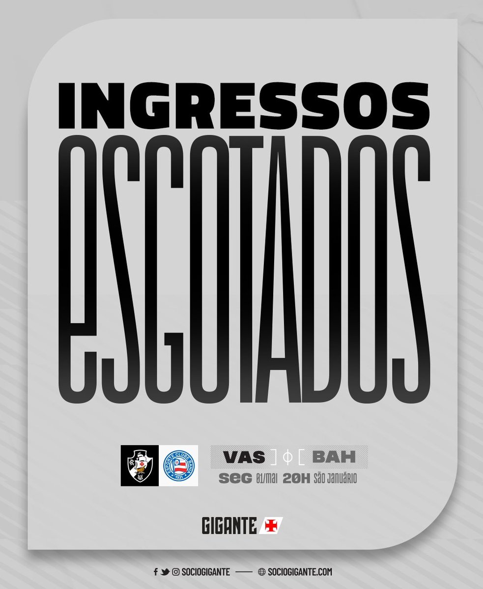 INGRESSOS PARA VASCO X BAHIA ESTÃO ESGOTADOS