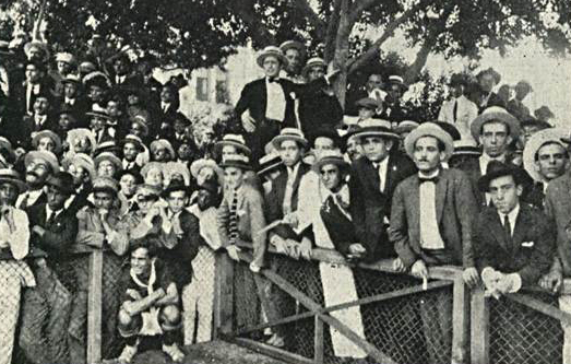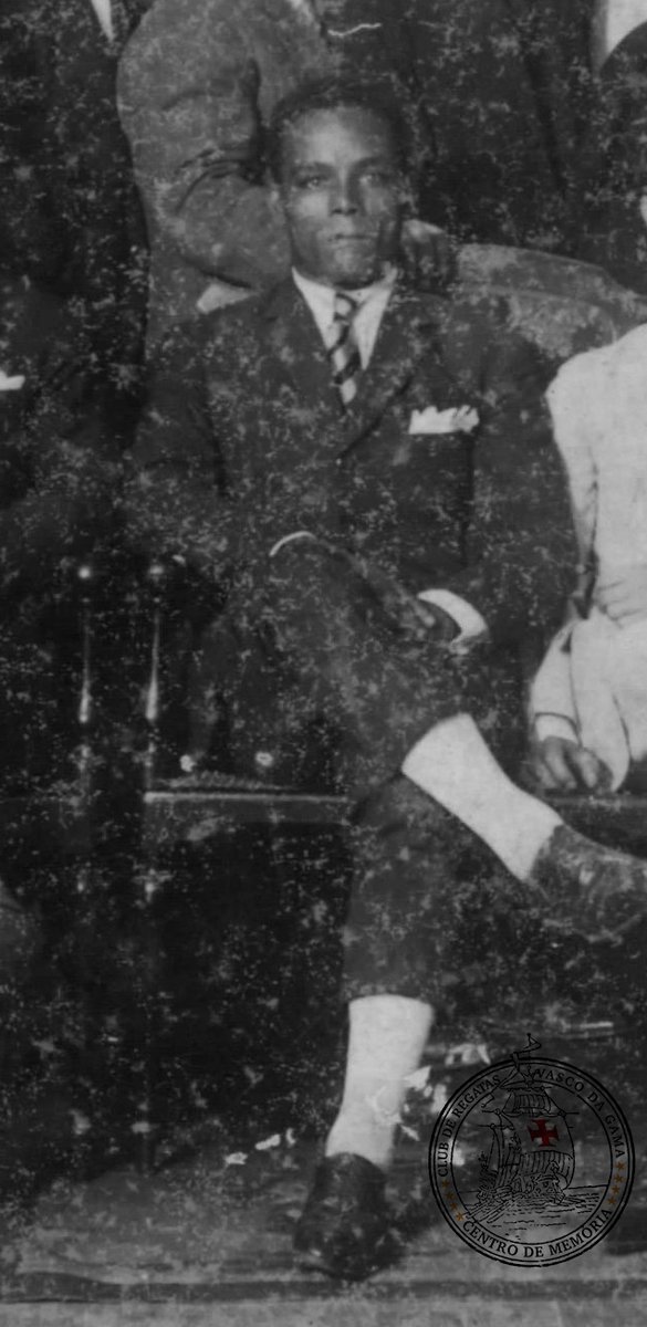 Vê-se o que pode ser um Camisa Negra, que fazia parte do segundo quadro vascaíno, em pose para fotografia com a massa vascaína.