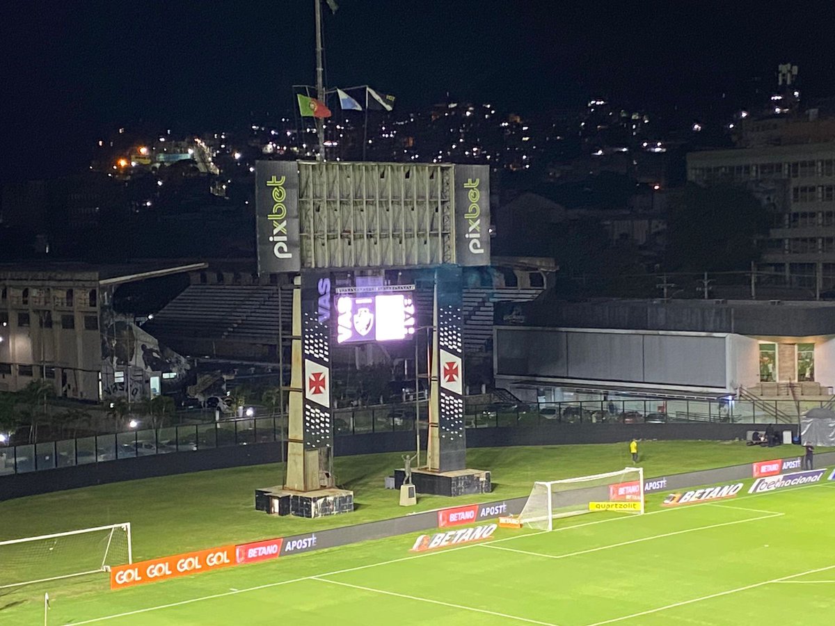 No detalhe: telão de São Januário sendo reformulado. 777 Partners prometeu melhorias no estádio para os próximos meses. #VASxBAH