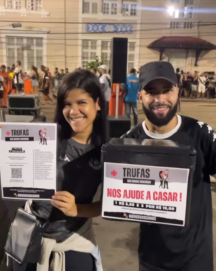 Casal vascaíno vende trufas em São Januário para arrecadar dinheiro para festa de casamento