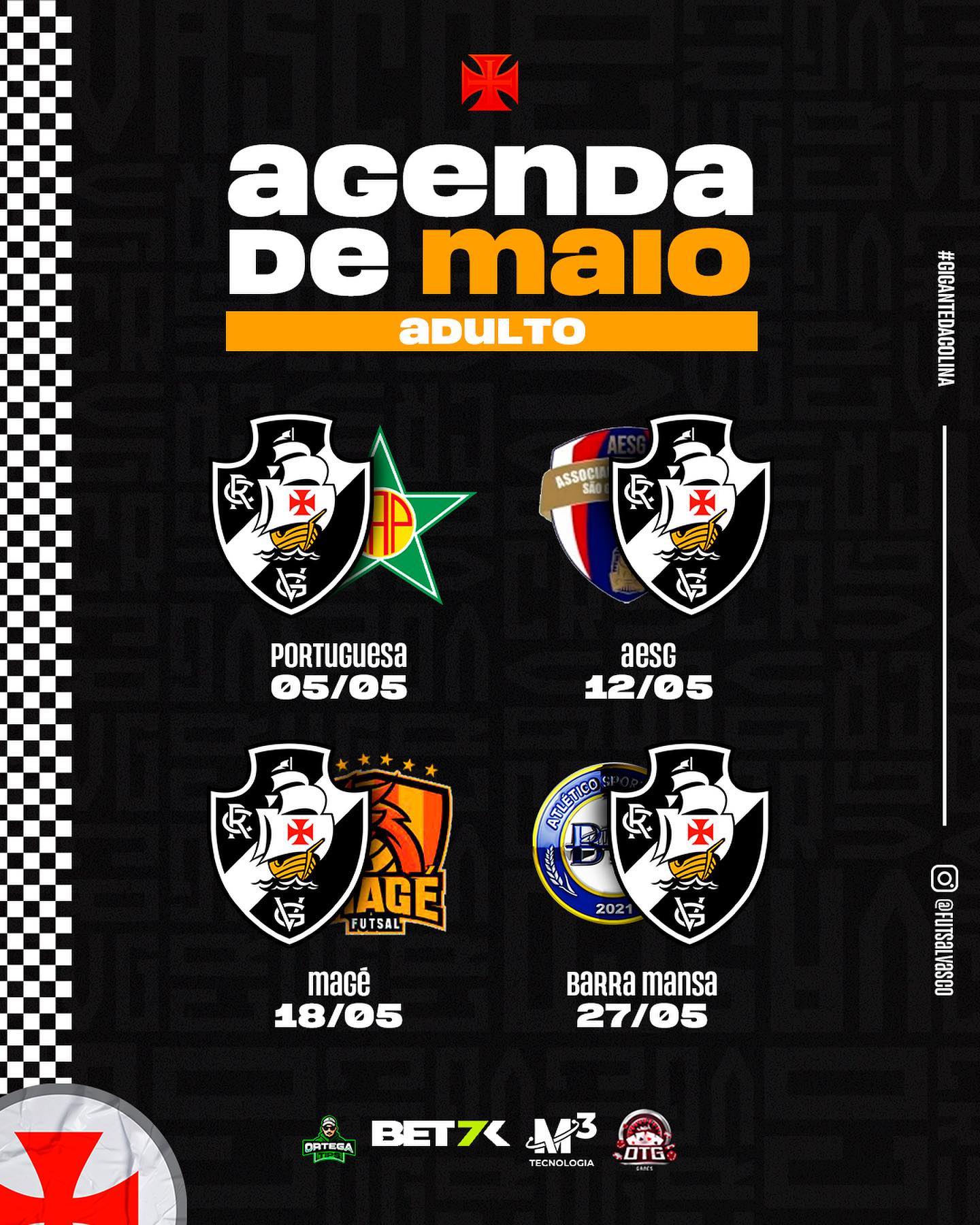 Futsal: Veja a agenda do Vasco em maio pelas categorias Adulto, Sub-20, Sub-17, Sub-15 e Sub-14