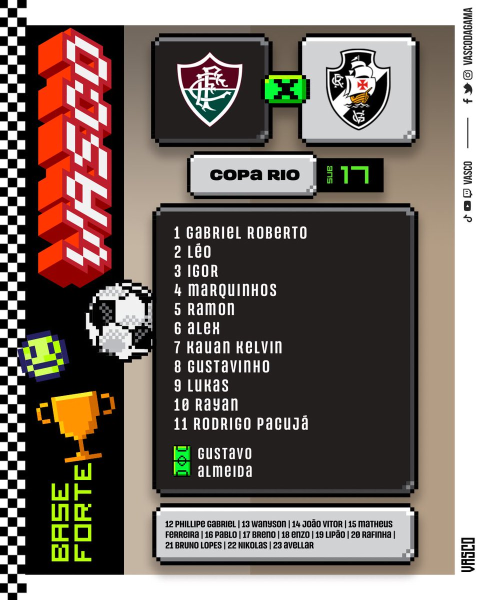 06/05/23 - Sub-15: Confira a escalação do Vasco para o jogo contra o Fluminense