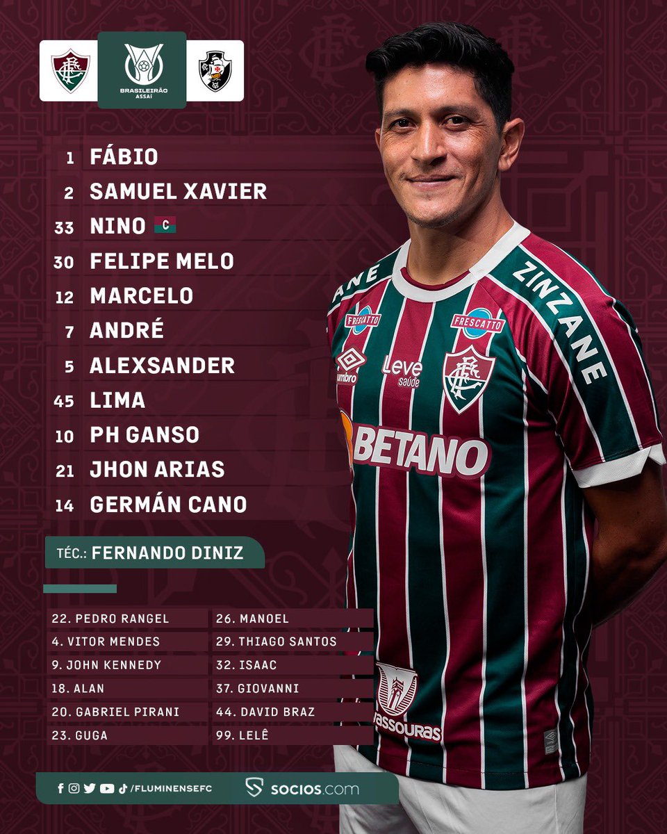 Veja a escalação do Fluminense para o jogo contra o Vasco; ex-vascaínos Fábio e Cano são titulares