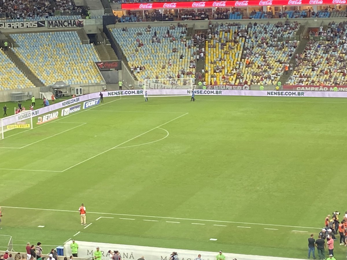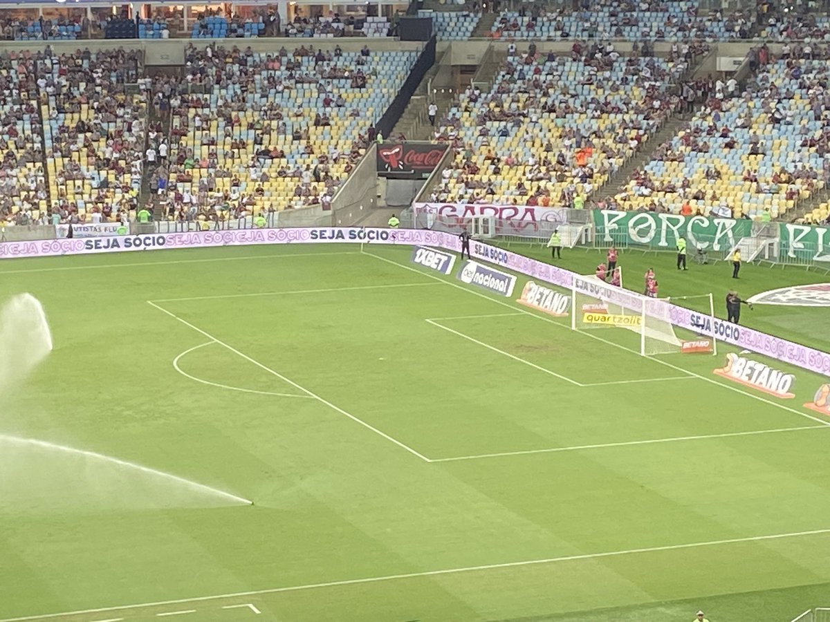 Gramado do Maracanã aparenta não estar nas melhores condições. Alguns buracos.