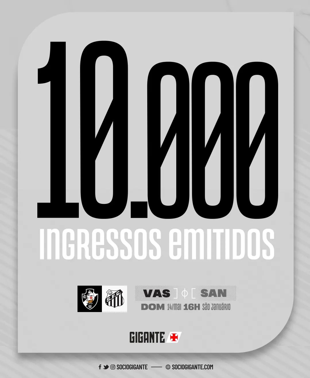 Já foram emitidos 10 mil ingressos para Vasco x Santos