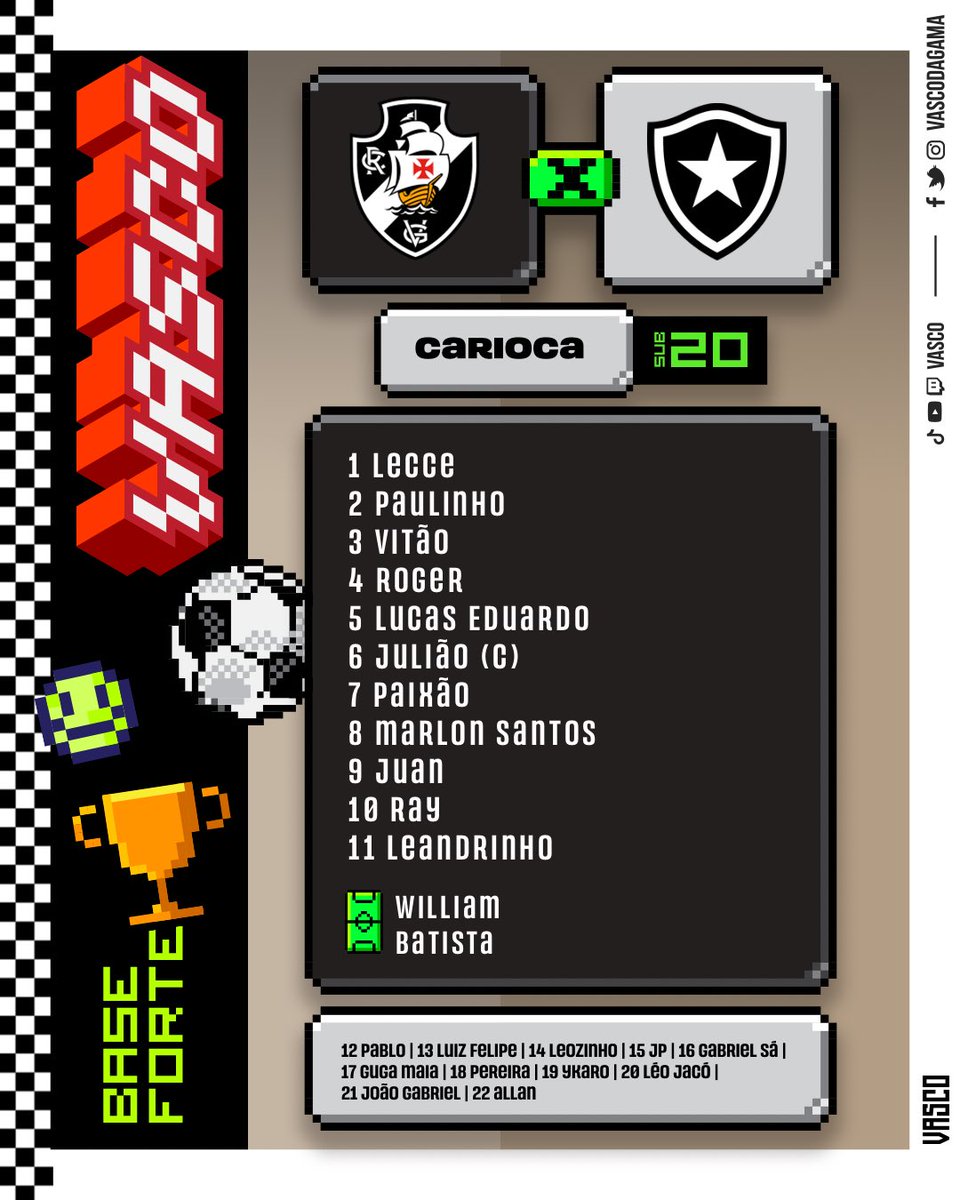 Sub-20: Confira a escalação do Vasco para o jogo contra o Botafogo