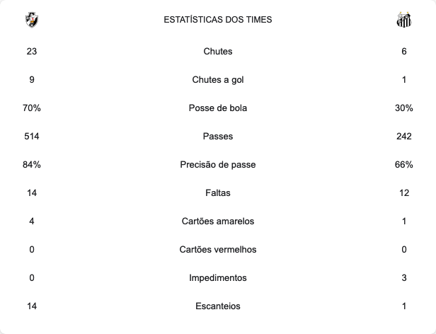Na sequência, o Cruz-maltino mexeu outras vezes. Mas, na prática, desorganizado e sem conseguir pressionar, facilitou a marcação do Peixe. Nos últimos minutos, o Vasco tentou partir para o abafa com muitos cruzamentos. Porém, não conseguiu empolgar nem o torcedor mais otimista. Assim, o clima em São Januário foi frio até as vaias e protestos após o apito final. Com isso, melhor para o Santos, que fez seu papel e garantiu mais três pontos.